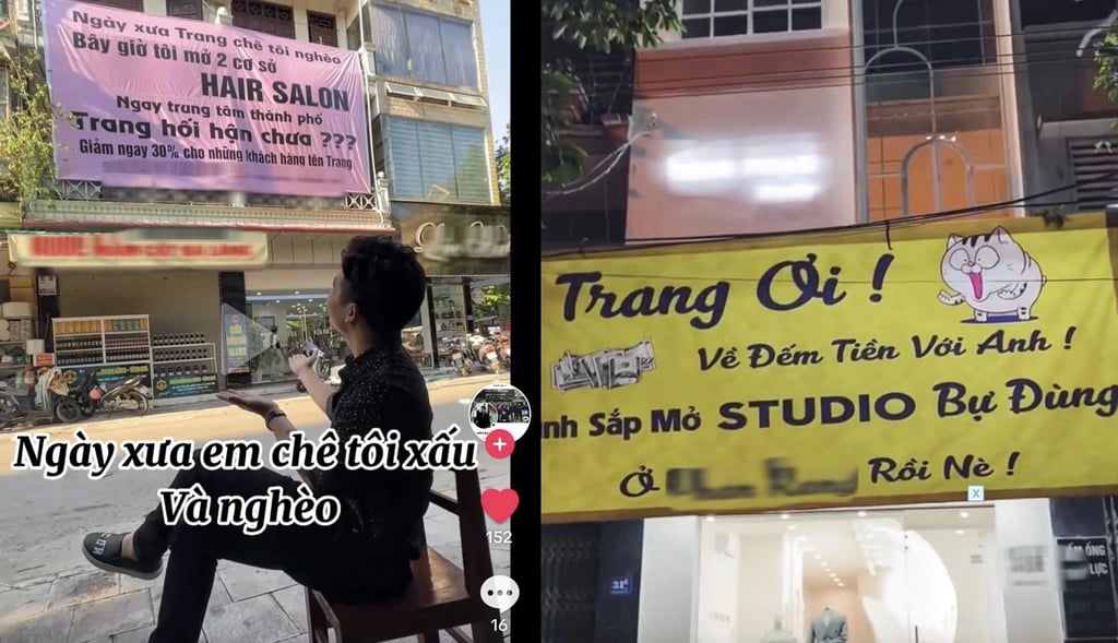 Trước đó, những bảng quảng cáo với nội dung "lạ" khác cũng trở thành "trend" được nhiều hàng quán tận dụng để gây sự chú ý như: "Ngày xưa Trang chê tôi nghèo. Bây giờ tôi mở 2 cơ sở hair salon ngay trung tâm thành phố. Trang hối hận chưa? Giảm ngay 30% cho những khách hàng tên Trang", "Linh à! Ngày xưa em chê anh nghèo. Giờ anh mở xưởng gấu bông rồi. Em đã hối hận chưa?"...