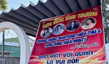 "Tưng bừng khai trương. Quang Hùng MasterD, Hiếu Thứ Hai, Sơn Tùng, Hòa Minzy… sẽ không đến. Bạn đến với quán là vui rồi!"; "Quán này là của fan ca sĩ Mỹ Tâm"... những bảng thông báo khai trương với cách trình bày khiến nhiều người nhìn thoáng qua sẽ ngỡ có sự tham gia của người nổi tiếng. Tuy nhiên nếu đọc kỹ mới phát hiện đó chỉ là sự hiểu lầm.